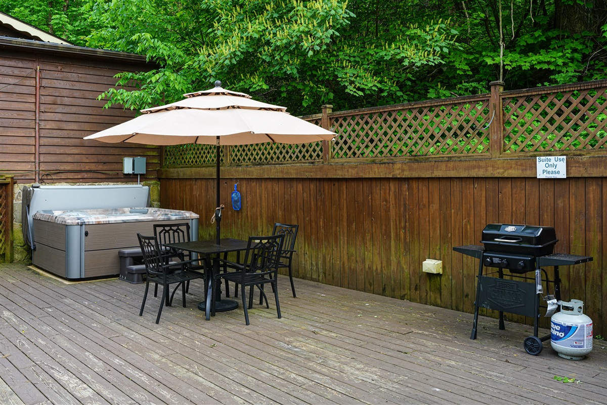 - Unit 2 is the left side of the duplex with direct access to the deck/hot tub area. This is the smaller room of the 2.